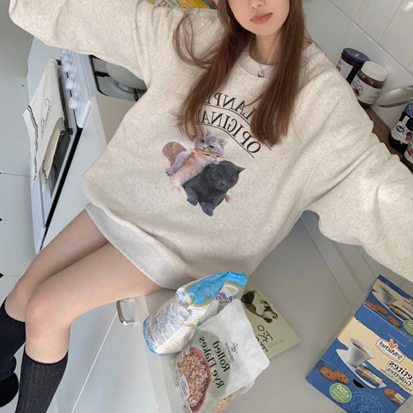[BC600]네코 캣츠 프린팅 기모 맨투맨