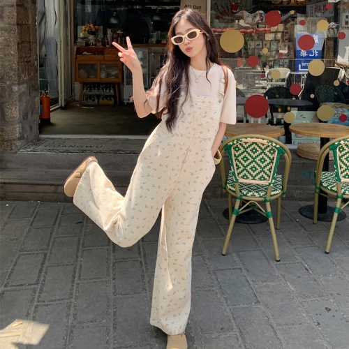 [DE398]마임 플라워 와이드 멜빵 팬츠