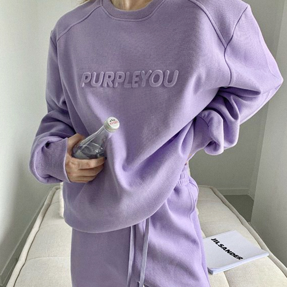 [BC840]엠보 레터링 맨투맨 조거 팬츠 세트
