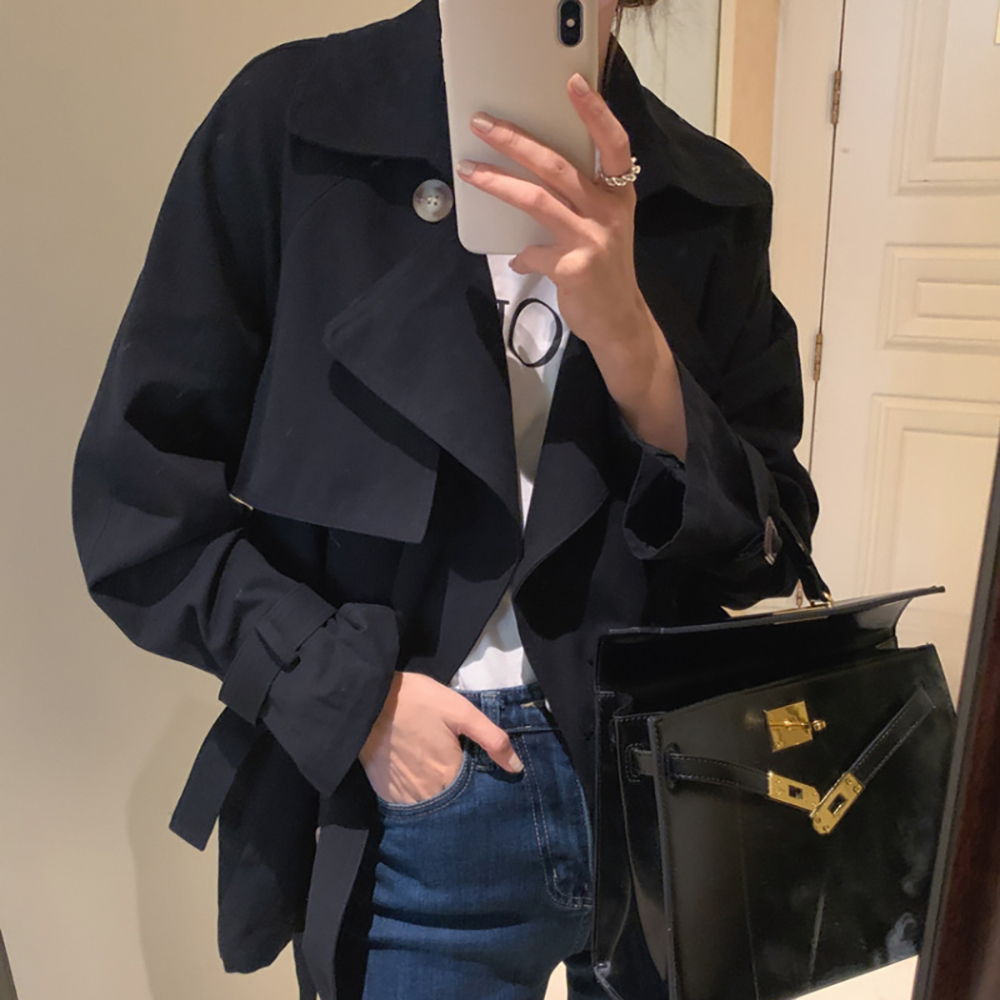 [DE684]프런트 벨티드 숏 트렌치코트