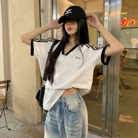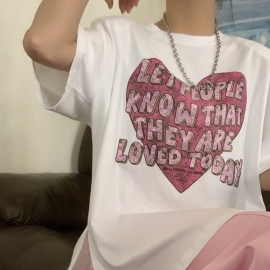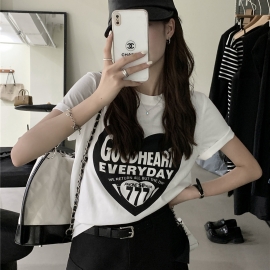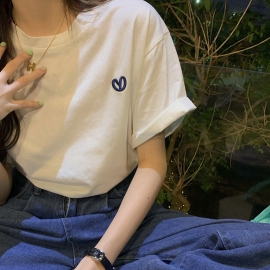 [CD419]캐주얼 하트 자수 반팔 티셔츠