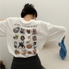 [EF061]오이이아 고양이 루즈핏 반팔티셔츠