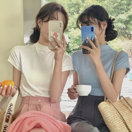 [CD418]페미닌 반폴라 반팔 티셔츠
