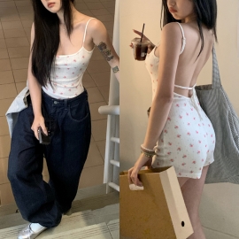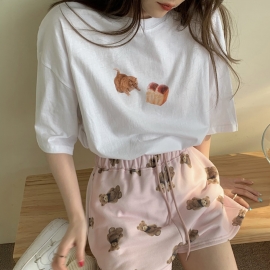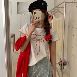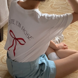 [DE350]리본 보우 프린팅 반팔티셔츠