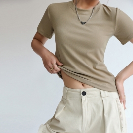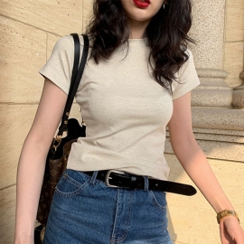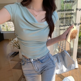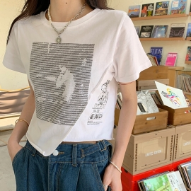 [NU317]텍스티 언발 슬릿 크롭티셔츠
