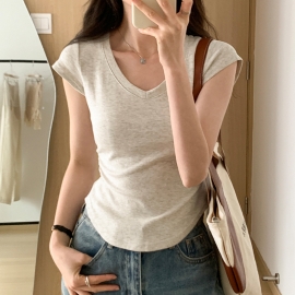 [DE532]데이 브이넥 셔링 슬림티셔츠
