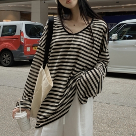 [DE668]로로 루즈핏 스트라이프 긴팔티셔츠