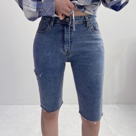 [QA290] 하밍 하이웨스트 8부 데님팬츠
