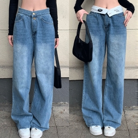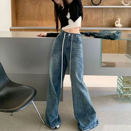 [CD066]킥 스트랩 와이드 롱 데님 팬츠