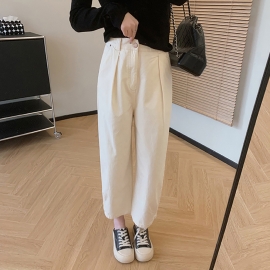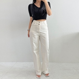 [CD122]포유 투버튼 하이웨스트 화이트 팬츠