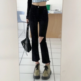 [CD127]키치 신축짱 데미지 일자핏 팬츠