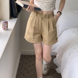 [CD525]베이직 코튼 핀턱 롤업 반바지