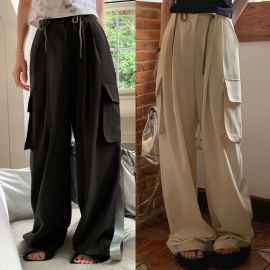 [EF008]포켓 카고 스트링 와이드팬츠