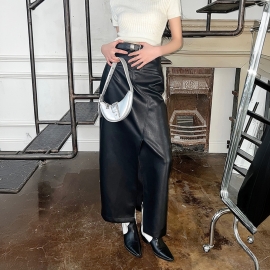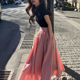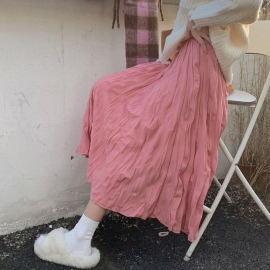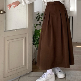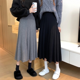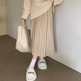 [BC452]설리드 모직 플리츠 밴딩 롱스커트