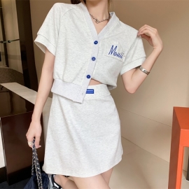 [CD174]블루포인트 반팔 가디건+스커트 세트
