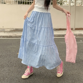[DE143]비비 타탄체크 모직 플리츠 스커트