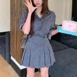 [DE393]트루 셔츠+플리츠 스커트 세트