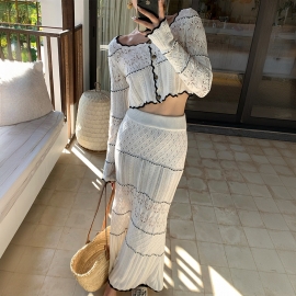 [DE587]비비 펀칭 가디건+스커트 투피스세트