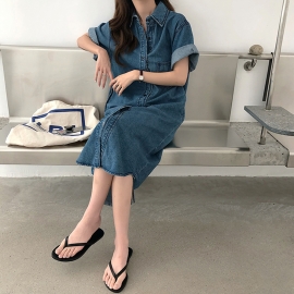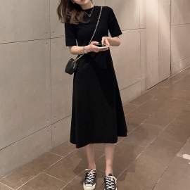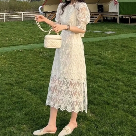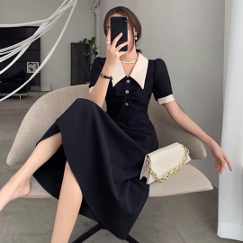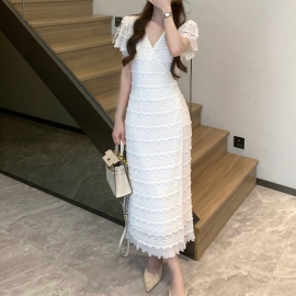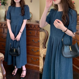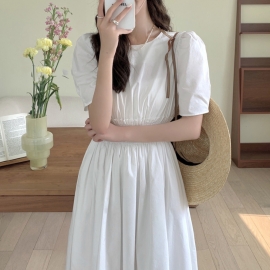 [CD557]퍼프 허리 밴딩 반팔 롱 원피스