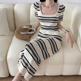 [BC996]릴리 스트라이프 스퀘어넥 니트원피스