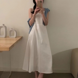 [AB455]미셀 반팔 티셔츠+뷔스티에 롱 원피스 세트