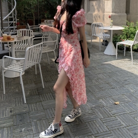 [DE970]포푸리 플로럴 쉬폰 랩원피스
