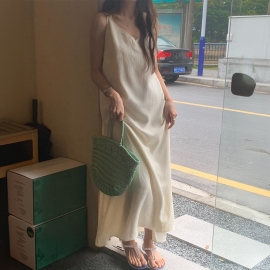[CD038]아코디 브이넥 끈나시 롱원피스