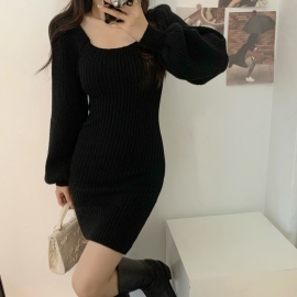 [BC400]어머 볼륨 니트 퍼프 미니원피스