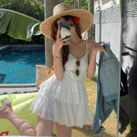 [AB162]에델바이스 앞트임 끈나시 미니원피스