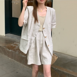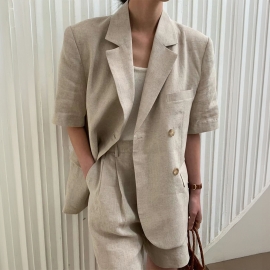 [DE585]디어 린넨 반팔자켓+팬츠 투피스세트
