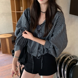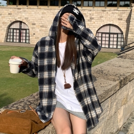 [EF170]컨슈머 체크 루즈핏 후드 셔츠
