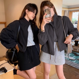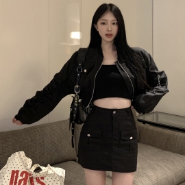 [BC792]엠보싱 배색 점퍼 미니스커트 세트