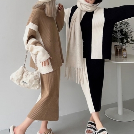 [DE040]위키드 배색 니트+스커트 세트