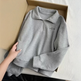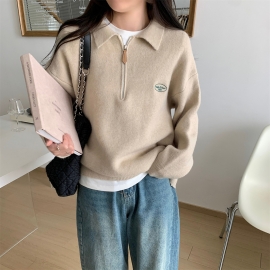 [DE217]스쿨 반집업 자수 니트