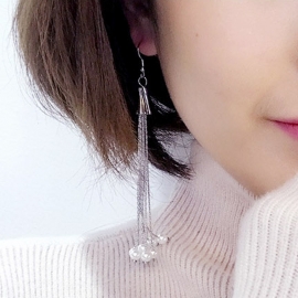 [ER106]진주 큐빅 포인트 롱 체인귀걸이
