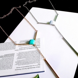 [N117]원석팬던트 일자 바 브이패션목걸이