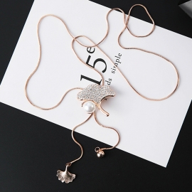 [N093]나뭇잎 잎새큐빅 팬던트 롱목걸이