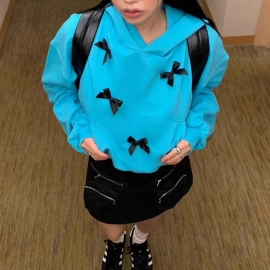 [DE313]데이린 리본 크롭 후드 티셔츠